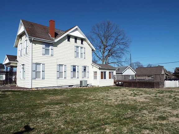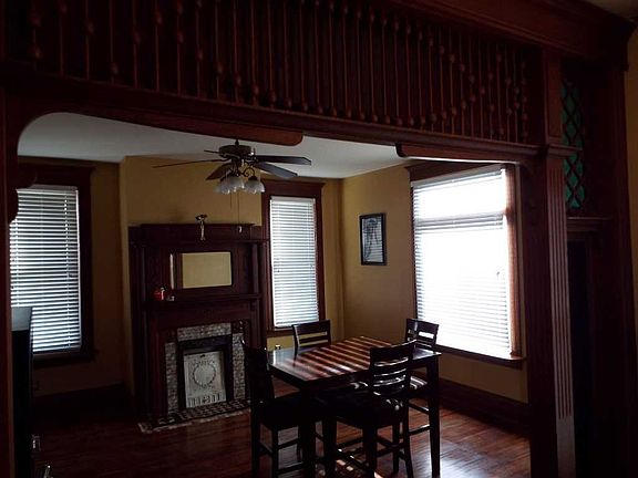 BEAUTIFULLY HISTORICAL HOME with updates, sitting on 5 city lots(.50acre) Lots of space inside and out. Feel the old charm the minute you walk into the foyer equipped with a large stain glass entrance door & accent window, hardwood floors, refinished woodwork. A unique craftsmanship arched entrance door welcomes you to the dining room featuring hardwood floor and an original wood mantel fireplace(non-working) The Kitchen updates include a newer island, refinished cabinets with hardware, tiled backslash, pantry, tile floor & Frigidaire appliances. New Carpet in the living room & office. Updated Baths conveniently located one on main level the other upstairs. All Bedrooms closets have been made larger with organizers. The office could be used as a workout room, playroom, or additional family space. All rooms are large in size, have high ceilings with ceiling fans, have refinished beautiful wood baseboards, widow sills, door & window frames. The unfinished basement houses the laundry. Building outside offers lots of options, workout space, office space, beach house. It has a heater, concrete floors & finished off walls. There is a utility pole building for your lawn equipment. Above ground pool with an open Deck for your summer enjoyment. Seller is offering Home Warranty for buyers peace of mind.