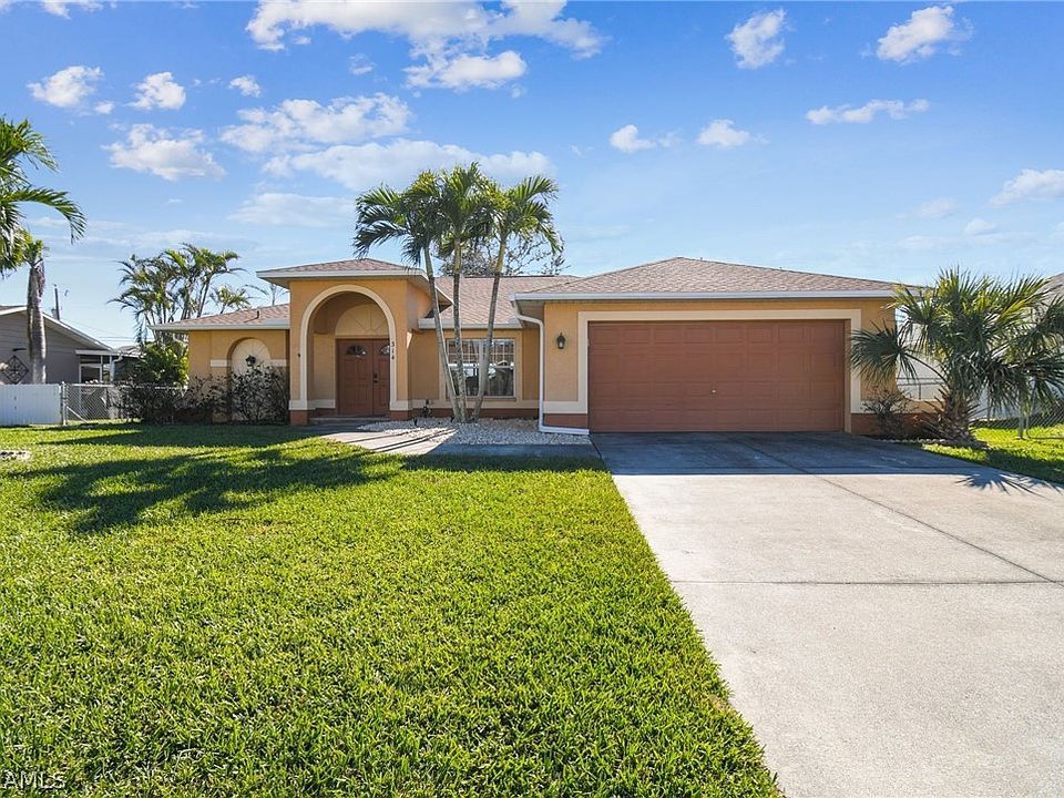 **Simply Stunning** Tucked away in the ever popular SE section of Cape Coral this tastefully updated and lovingly maintained, fully fenced, 3 bedroom 2 bath home is an absolute must see. As you step inside you'll be greeted by the soaring vaulted ceilings that adorn your light and bright great room floor plan. The home features newer AC, custom can lighting, LED lights, custom trim, beautiful fans and fixtures, and marble sills. The kitchen is well appointed and features stainless steel appliances and an island bar-top all ready for your next gathering. Outside, enjoy watching the family and pets romp in your fully fenced backyard. Relax on your super wide lanai that takes up almost the entire back of the house. Perfect for entertainment and grill outs. Wonderful location and close proximity to popular restaurants, shopping, and schools. Put it all together and you’ll see why this fantastic home is an opportunity you don’t want to miss!