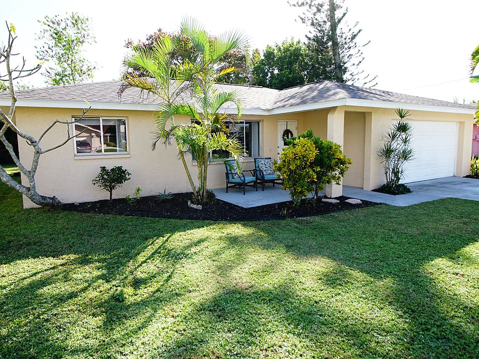 Check out this gem, in the highly desirable Country Club neighborhood. This 3/2 home has a beautifully updated granite kitchen complete with stainless steel appliances. The home has an open concept living space with ceramic tile, updated in 2015. Master bedroom with walk in closet and on suite bathroom recently remodeled, complete with walk in rain shower. Large screened in lanai overlooking private back yard with mature landscaping, with plenty of room for a pool. Several Updates completed in nov 2018, including new roof and new carpet in bedrooms. Home is a short drive to Fort myers, dining and entertainment. Assessments are paid in full. No HOAs. Home is across the street from waterfront homes, with gulf access. * call (419) 6804086 for information or to set up showing