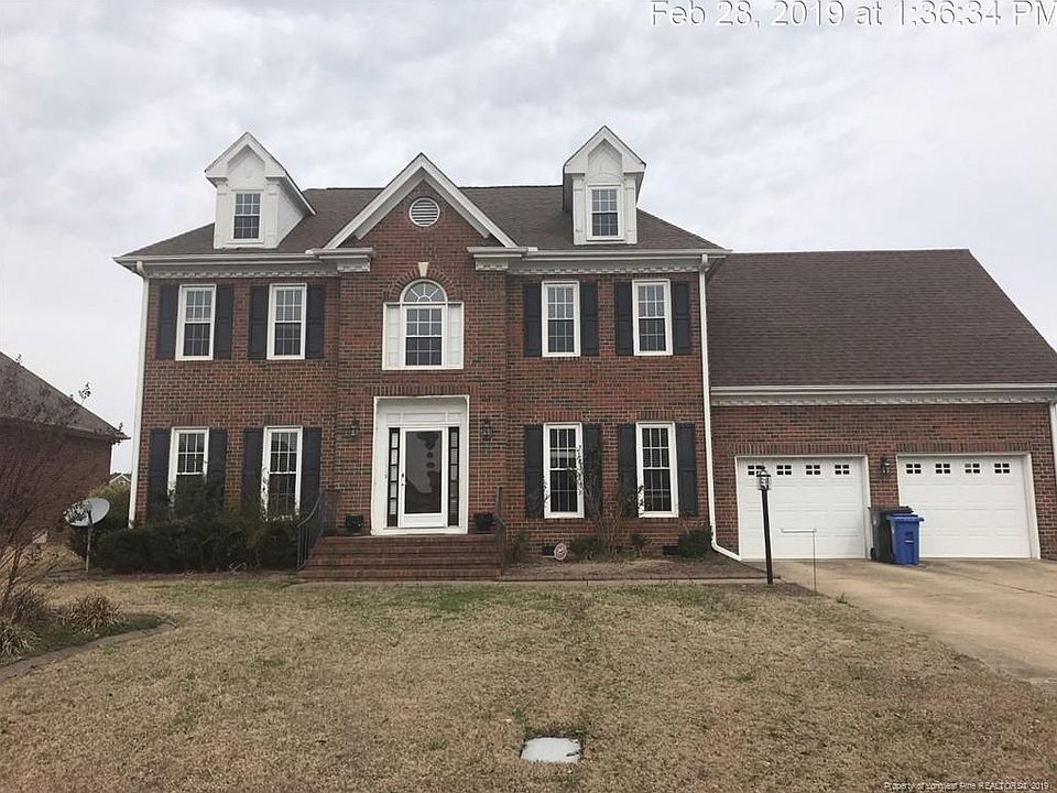 4 bedroom 2.5 bath home with large bonus room over the double car garage. Formal living and dining rooms and den with fireplace. Screened -in porch and patio. Small dogs under 20lbs permitted. NO HIGH RISK ANIMALS because the backyard is not fenced. Less than 10 minutes to the gates of Fort Bragg and Simmons AAF, less to the Goodyear plant.