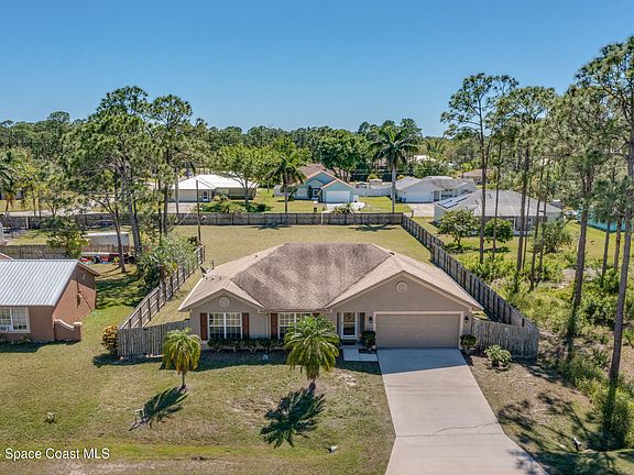 This beautifully updated and well-maintained 3-bedroom, 2-bath on nearly 1/2 acre! Offers over 1,400 sq. ft. of living space. Ideal for those seeking a move-in ready home, it features modern updates such as wood look tile plank flooring throughout and a clean, inviting atmosphere. Located in a desirable neighborhood, this home is just 20 minutes from the beach and close to local amenities, while being tucked away in a peaceful and quiet area. A perfect choice for anyone looking for convenience and comfort in Palm Bay.