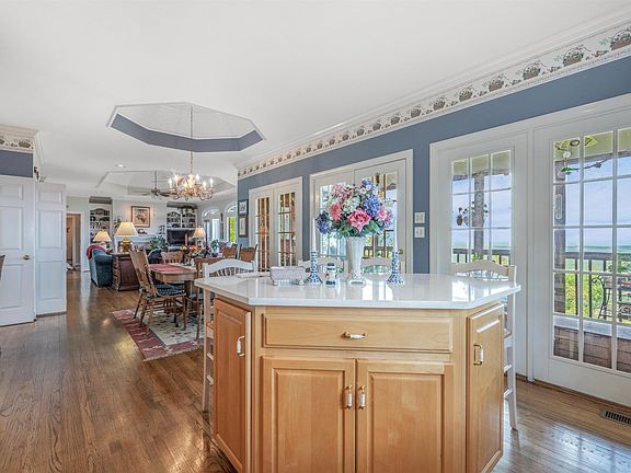 Unobstructed view of Oxmoor Valley from most of this beautiful 4 or 5 bedroom home. Entrance is a soaring 2 story foyer. Spacious formal dining room, study, master bedroom and bath with seprate shower and jetted tub on M/L. Very open kitchen and greatroom accross back of home with doors leading to relaxing covered deck with awning to keep you cool while enjoying spectacular sunsets. GR has gas FPL, wet bar. Kitchen has island bar, quartz counters, eating area and induction cooktop with dbl oven. Close by is laundry with wet sink, floor drain and extra cabinets. Upstairs you'll find 3 Br, large playroom(could be BR) and 2 baths. Dbl M/L and 1 car bsmt garage. Workshop in basement and so many options for finishing basement which has covered deck accross rear. Hardwood in most of M/L, tile in baths and carpet in brs. Beautiful attention to details, pajama stairs, circular drive, central vac, many closets, some walk-in, walk-in attic and many updates. thruout.