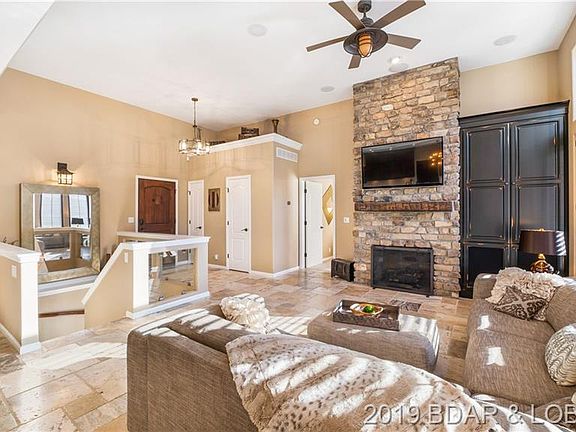 Perfection in Paradise! Luxurious remodel completed on this 4 bed, 2.5 bath Lakefront home on the Lake of the Ozarks. Dream home in the high-end, well tended community of Sienna Oaks is equipped with all the SMART HOME components, vaulted ceilings & 2300 sf of well planned spaces graced by Travertine floors to incredible built in cabinetry. This is a haven for lake dwellers or even the savvy full time resident in a magnificent cove. Enter through the custom wood front door to dramatic large windows & open concept that draws you in on the main level of gathering spaces; a living room, stunning sitting room overlooking the lake, massive gourmet kitchen with a long granite bar for all, master en suite & a guest half bath. Follow the beautiful staircase to the family room, 2 lake side bedrooms, one guest bedroom, laundry room & storage. Concrete dock includes 2 diving boards, 2 ladders, storage & hoist. Please request the Special Features sheet for all the specs of upgrades & details.