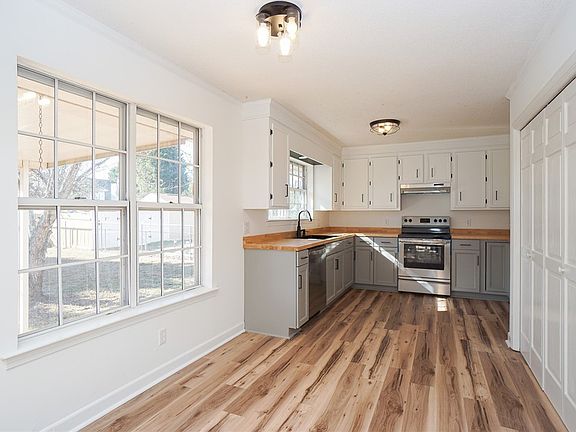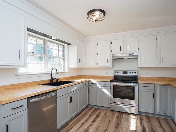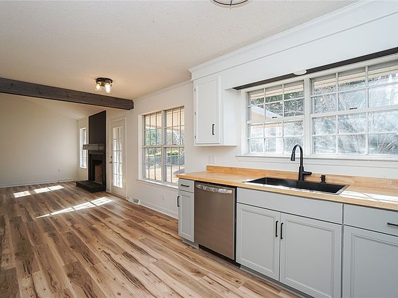 As you step inside, you're greeted by the allure of the all new flooring, accent fireplace, cathedral ceiling, and fresh paint throughout. The upgraded kitchen features unique, polished butcher block countertops, providing a stylish backdrop. The bathrooms have been completely transformed, with modern finishes and features. Lastly, the fenced backyard provides a private oasis, while still located minutes from all your needs.