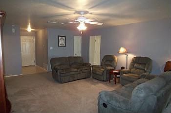 A uniquely designed 5 bedroom, 2.5 bath, 1 living, 2 dining room home. Step through the front door and entryway to see why guests will naturally gravitate toward the great room that is the heart of this home. This large great room has carpet, lighted ceiling fan, and provides access to the back patio through sliding glass doors. Turn left from the entry and see the breakfast area that is open to the galley style kitchen with decorator ledged cabinets. Take a look inside the walk-in pantry. A family perfect dining room has carpet and offers open access through the kitchen and the great room. A spacious mater bedroom that has a lighted ceiling fan and an oversized walk-in closet is another great feature. Enjoy the garden tub/shower and marble sinks of the master bathroom. Left of the master bedroom walk into the 5th bedroom that is perfect for an office and has a deep closet. Through the great room walk down the hallway to the 3 of the minor bedrooms and take note all have deep closets for plenty of storage and room. The second bath is along the same hallway along with a linen closet. Preserve the peace on the covered patio and enjoy the space of the backyard.