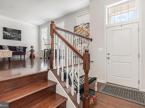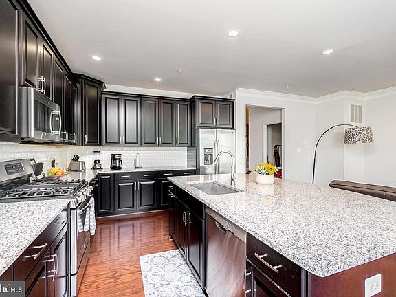 There's so much to love about this house! Check out this kitchen because this is the one to call home. Beautiful Move-in ready 3 level garage townhome. Close to 95, close to shopping, great schools. This home features and semi-open floor plan, hardwood floors, custom crown molding, ship lap, an 8 by 5-foot kitchen island, a 12 x 12 master bath with a 5 1/2 x 5 1/2 walk in shower and it backs to trees giving additional privacy. The brick exterior is accented by 2 story pillars on either side of the entry, a decorative Juliet balcony, and an awning over the garage doors complete the upscale styling. Walk into the welcoming foyer. Hardwood floors gleam throughout the whole main level. You will love the 9-foot ceilings and wide upgraded crown moldings, and recessed lighting. The brightly lit living room features 3 large full-length windows. The stunning dining room is set off with hardwood, vertical ship lap and enhanced moldings. The combined kitchen and great room about 20 x 18 feet. The kitchen area has 40-inch upper cabinets, GE stainless appliances including a gas stove with a griddle insert, a farm sink, a huge 5 x 8-foot granite island with base cabinets on both sides, 16 foot of granite counter space against the walls, a large pantry. This is one of the largest kitchen designs in the neighborhood with so much storage to use. There is also space for eating and a tv area. There is walkout access to the large deck that overlooks open space, perfect for BBQ's. Upstairs, the large Master bedroom (20x18) has vaulted ceilings and recessed lighting. There are 2 walk-in closets, the first 7x9 the second 4x5. The 12 x 12 master bath has a beautifully tiled walk-in shower, and separate water closet. 2 additional bedrooms also have vaulted ceilings and large closets. There is a full bath and laundry in the hallway area. All of the bedrooms have recessed lighting and rough ins for ceiling fans. The large lower-level finished rec room is an L shape. There is a walk out to a patio area below. Perfect for enjoying the evening. There is a partially finished room with a rough in for another full bath currently carpeted and used for storage. There is another storage closet. Inside access to the two-car garage makes coming and going easy. The garage has a 4x5 alcove that can be used for workshop or outdoor equipment storage. There is parking for 2 vehicles in the garage, 2 can fit in the driveway. There is overflow parking between the buildings. Features include street lights, sidewalks, sprinkler system, radon system, gas heat and hot water heater. The HOA takes care of lawn maintenance front and rear, the neighborhood playground just a few doors up, NEIGHBORHOOD HAS PAVED WALKING TRAIL TOO! TRASH, SNOW & COMMON GROUND MAINT INCLUDED! This home has been beautifully maintained. The sellers have started packing so you will see boxes. Don't wait, this could be yours!
