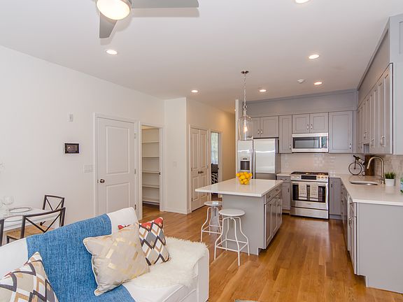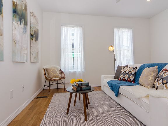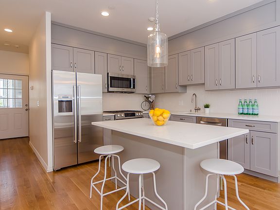 Absolutely stunning 2016 complete renovation. Nothing has been overlooked in this 2 bed / 1 bath condo in the most sought after Jeffries Point neighborhood. Open concept living/dining - Kitchen has custom cabinets, professional series stainless steel appliances, Carrera quartz counter tops and a large center island w/ seating for 4. New hardwood floors throughout, 9 ft ceilings, recessed lighting, marble bath with glass doors, huge walk-in pantry, abundant closet space, in-unit W/D, central AC, Video intercom, private walk out deck, beautifully landscaped yard with expansive lawn, brick patio and peach tree. This unit includes approx 100 sf private locked storage room in the basement. Two blocks to Maverick T, Piers Park and all shops and restaurants. The building features include: new rubber roof, new plumbing and electrical, new windows and doors, new sub flooring, new hardie board siding; fully sprinklered and hardwired fire alarm.