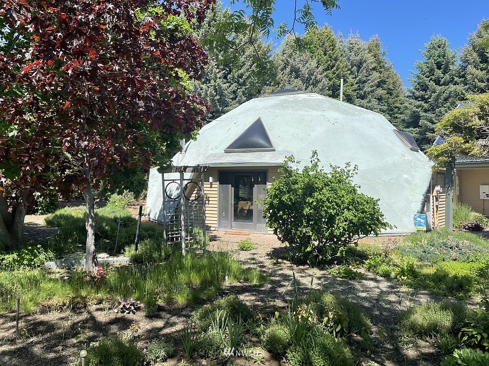 Be one of only a few to own such a special property! This 3 bed, 2 bath geo dome home is in a great location on the Westside of Ellensburg. Over 4 acres of irrigated land, offering an abundance of privacy. On the lower level, 2 bedrooms & one bathroom along with a living area and recently remodeled kitchen with new stainless steel fridge and range. Upstairs there is one bed and bath. Radiant floor heating and tile flooring throughout the main level. Plus, a separate guest geo dome that has a ¾ bath and 2 car garage attached. The property has a straw bale greenhouse, natural and flowering landscaping perfect for a gardening enthusiast. One of the many perks of this unique property are the efficient solar panels to offset energy costs.