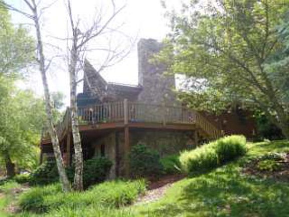 MOUNTAIN ESTATE WITH A BEAUTIFUL SETTING ON 19.484 ACRES. THIS PROPERTY HAS A DEAD-ON VIEW OF THE PEAK, PRIVACY, SLOPING TO LEVEL PASTURE WITH APPROXIMATELY 500 BLUEBERRY AND 200 HUCKLEBERRY BUSHES WITH AN ESTABLISHED U-PICK ENTERPRISE, FRONTAGE ON STOCKED TROUT STREAM, LARGE DETACHED GARAGE WITH 1/2 BATH AND FINISHED GUEST QUARTERS ABOVE FEATURING LIVING ROOM, KITCHEN, BEDROOM, FULL BATH AND LAUNDRY. HUGE FENCED AREA FOR DOGS, LARGE COVERED SCREENED PORCH WITH STONE FLOORS AND HOT TUB. LOTS OF DECKING. GREAT PROPERTY A MUST SEE. HOME FEATURES HARDWOOD FLOORS AND MASSIVE STONE FIREPLACE IN LIVING ROOM AND FAMILY ROOM. TWO BEDROOMS AND FULL BATH ON MAIN FLOOR WITH MASTER BEDROOM AND MASTER BATH ON SECOND FLOOR. CATHEDRAL CEILING IN LIVING ROOM WITH A LOT OF GLASS FOR THE VIEWS. FINISHED BASEMENT WITH FAMILY ROOM, FULL BATH, AND LAUNDRY. KUBOTA TRACTOR AND IMPLEMENTS ARE INCLUDED. APPLIANCES IN GUEST HOUSE INCLUDED ARE RANGE, MICROWAVE, AND DISHWASHER. REFRIGERATOR AND WASHER/DRYER IN GUEST HOUSE DO NOT CONVEY.