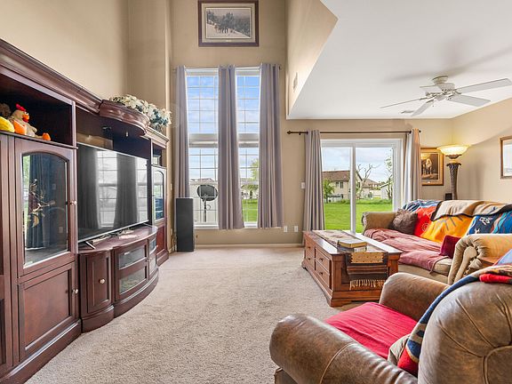 Maintenance free living at its best! Welcome to Meadowbrook and this meticulously maintained END UNIT townhome. Offering a spacious 2 car garage and over 1600 square feet of finished living space, this is a prime opportunity for the most bang for your buck. 17 foot tall great room ceiling with baluster stair case and catwalk is a rare layout feature usually exclusive to single family designs, allowing a floor to ceiling window for plenty of natural light. Generously sized primary bedroom offers vaulted ceiling and primary bathroom suite. Have some piece of mind as this is a ONE OWNER home that has been well loved over the last 20 years. Freshly painted in May 2024, new roof on entire building in 2021, new smoke alarms, and a boat load of other maintenance done this spring! Snow removal and lawn care included in HOA. She's ready for another 20 years of enjoyment by its next owner.