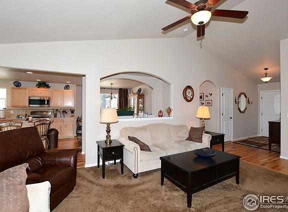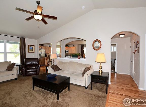 Amazing views in this ranch home with a finished basement. Lots of upgrades including hardwood floors, all stainless kitchen appliances, gas range, quartz kitchen countertops, whole home humidifier, central air and more. Main Floor master with 3/4 bath and walk-in closet. Basement adds an additional 2 bedrooms, large living area and plenty of storage space. Enjoy the back patio with unobstructed views of the Front Range and Longs Peak. Property backs to open space. Don't miss this one.