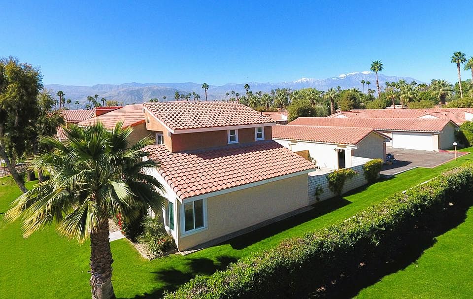 Welcome to beautiful, sought-after gated community of Mountain View Falls in Palm Desert. This amazing condo features a great layout, a downstairs open floor plan with living space, kitchen, dining and bedroom with a full bath. From your kitchen you can view both your living space and look out the window to a view of your private rear courtyard. Up the stairs you will find your primary bedroom, featuring an upgraded walk-in shower and a great balcony with a picturesque morning sunrise view. The rear private courtyard is a detached two-car garage with an automatic door opener. This centrally located condo offers the best of desert living amenities. This condo comes turnkey, fully furnished! No need to hire movers, just bring your suitcase and start enjoying the coveted desert lifestyle. Tucked between grassy lawns and mature trees you will find two pools, spa's, walking paths, tennis and pickleball courts. You will enjoy every minute of your time in Palm Desert.
