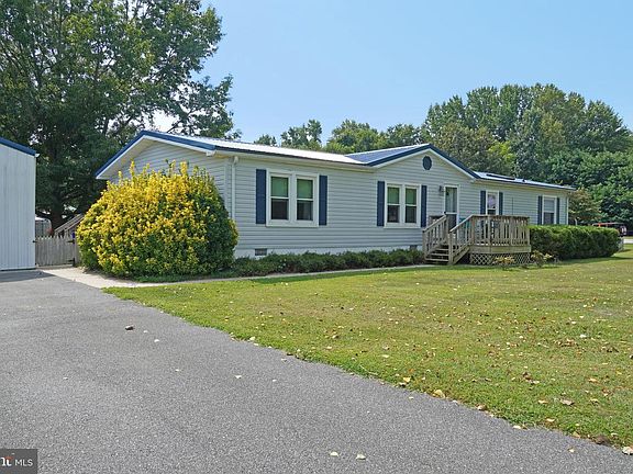 Located just south of Coastal Highway in Kent County is where this manufactured home is located. Easy access to Dover, Milford, and the beaches. Three bedroom & two bath doublewide on a permanent foundation. Living room with carpet and vaulted ceiling. Eat in kitchen with gas cooking, refridge, tile back splash, and plenty of cabinets with access to the dining area. Gathering area with stone fireplace. Spacious owners suite has full private bath with shower stall & closet. Two nicely sized quest bedrooms & a guest bath. Laundry room. Two car garage with space for a work shop. Two storage sheds. Above ground pool with deck. Space for a garden. Quick drive to South Bowers Beach.