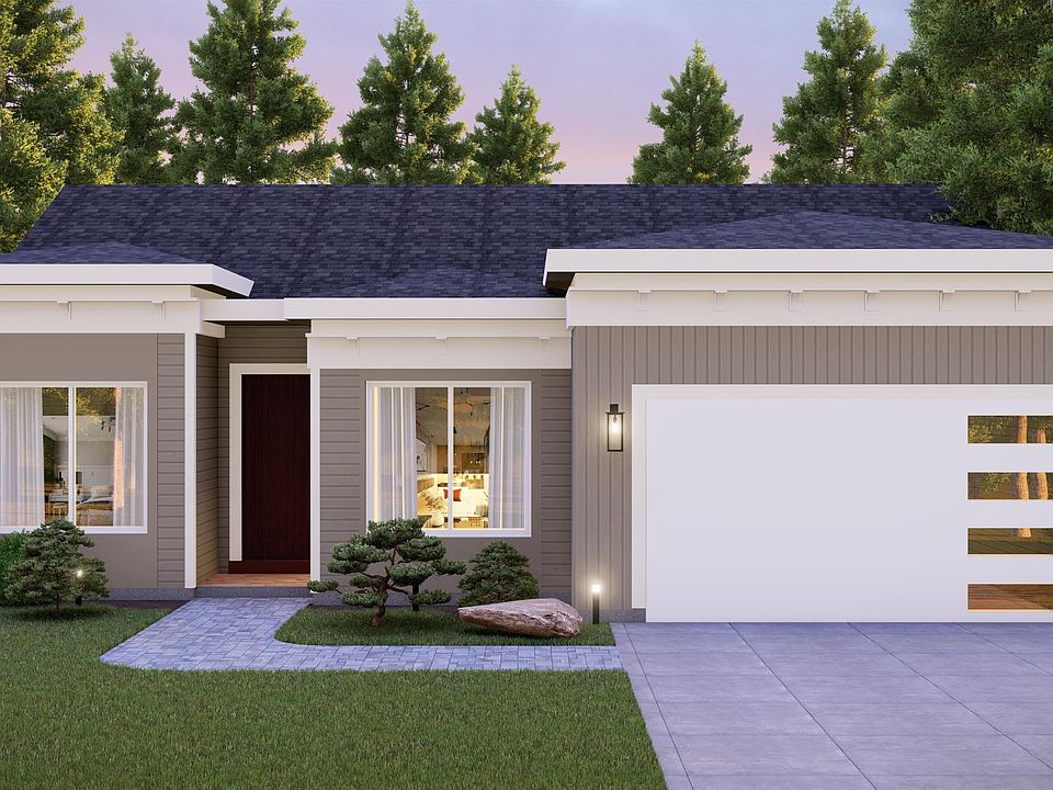 Pre-Sold Redwood Plan with 3 car garage with 4 foot garage extension and covered patio.
