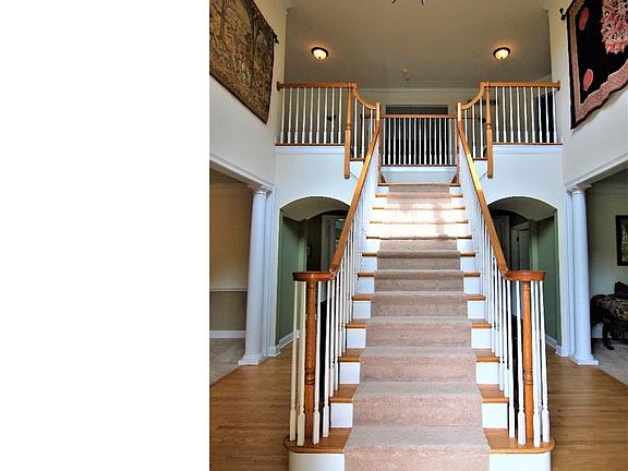 *** "Home Sweet Home!" *** Sprawling 6 Bedroom, 3 Full & 2 Half Baths Colonial Home located on a Private Lane offers the "Picture Perfect" Setting to Call "HOME"! Huge Welcoming Front Wrap Around Porch is a Perfect Place to Greet all Your Guests! Inviting Grand "2-Story" Foyer accented with Split Staircase, Arched Entryways, Crown Moldings, Wall Sconce Lighting, Elegant Chandelier & Hardwood Floors! 9' Ceilings on 1st Floor! Formal Living Room appointed with Crown Moldings, Marble Wood Burning Fireplace & Accent Lighting! Formal Dining Room with "Built-In" Corner China Cabinet, Crown & Chair Rail Moldings + Beautiful Chandelier! Huge "Eat-In" Kitchen with Plenty of 42" Cabinetry, Counter Space, Gas Cooking, Under Cabinet Lighting, Recessed Lighting, Large Island + Breakfast Area Too! Fabulous Family Room with Crown Moldings, Marble Wood Burning Fireplace Rear 1st Floor Deck! 1st Floor Den with Wall Sconce Lighting! Powder Room! 2 1st level Bedrooms would make an Excellent "At Home" Office or Possible In-Law Suite offering a Full Bath! 1st Floor Mud Room with Enormous "Walk-In" Pantry! Pampering Master Suite with Cathedral Ceilings, 2 "Walk-In" Closets, Private 2nd Floor Deck + Luxurious Master Bath with Double Bowl Vanity, Corner Set Jacuzzi Tub, "XL" Shower & Tile Floors! Generous Bedroom Sizes Through-Out! Outstanding Finished Basement offers a Captivating Place to Entertain All Your Guests with A Custom "Wet" Bar/Pool Table Area, Entertaining Area with A Beautiful Brick Fireplace, Game Room, Gym Room, Surround Sound, Powder Room And Much More! Enormous 37' X 21' "2-Story Garage is Great For the Hobbyists! Gas Heat! Central Air! Cul-De-Sac Setting surrounded by 37+ Acres of Conservatory Land makes this a Fantastic Setting to Call "HOME"!