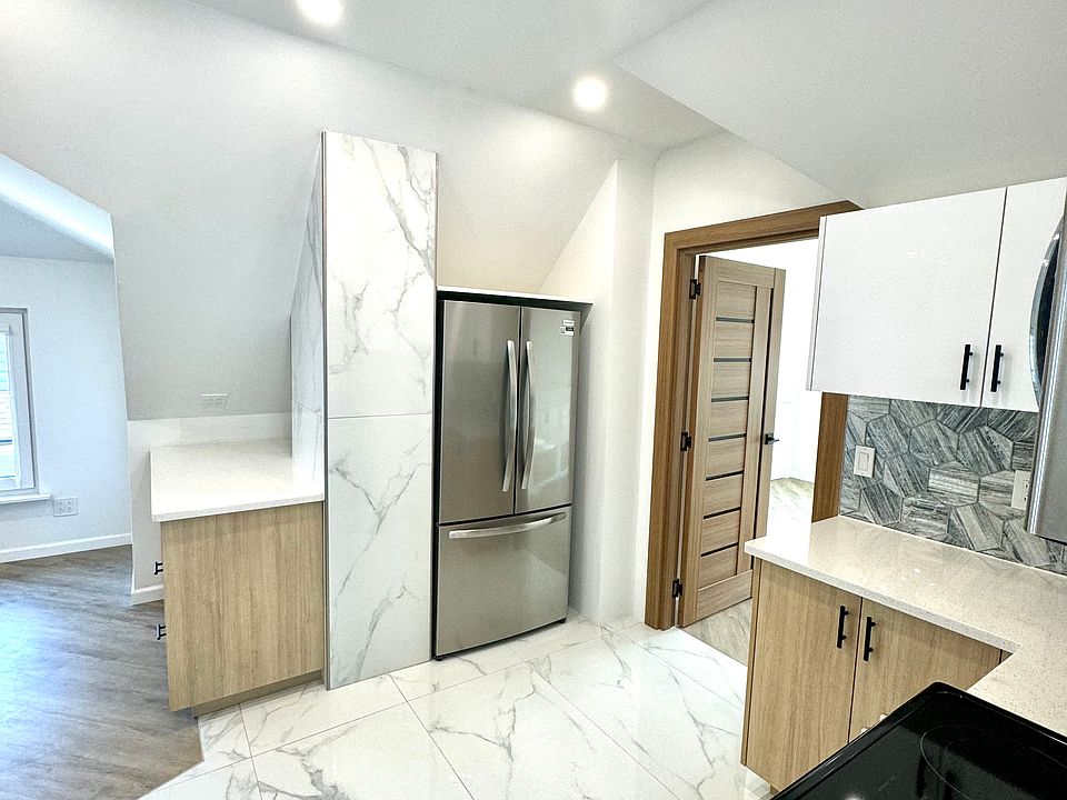 This gorgeous 2 bedroom unit has been fully renovated with high end custom European finishes throughout. From the insulation to ensure cost efficient heating and sound resistance, to heated kitchen and bathroom floors, quartz countertops, high end cabinets and appliances, this home leaves little to be desired. Enjoy luxury living with recessed lighting, ductless split AC + heat units in each room, and large windows offering light and bright living areas. There are ample amounts of specialty built closet space throughout unit. Shared yard use, potential off street parking, and laundry (more details to be provided upon viewing). Home is in close proximity to transportation (NYC buses withing a block), schools, places of worship, parks and restaurants. No smoking in unit, renters insurance requires and tenant pays one month broker fee.