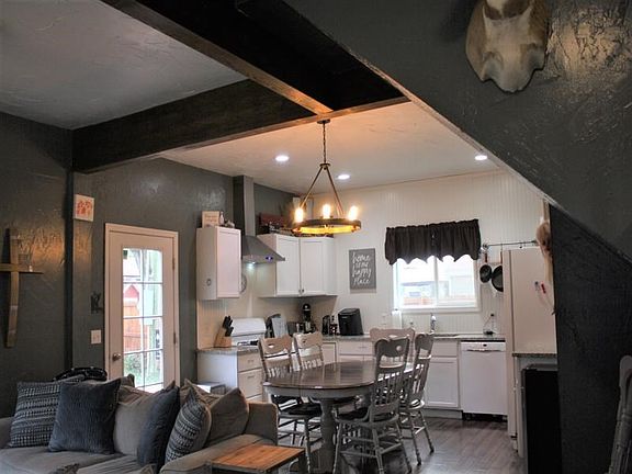 Great home in the small town of Belfry, just 15 min. to RL. Main floor features a mudroom foyer-entry, living room with French doors to deck and backyard. Dining room with large, sunny kitchen and granite countertops. Main floor bath has washer and dryer. Large, main floor master bedroom and office/extra closet space. Upstairs has large family room, two bedrooms and a full bath. So many fabulous updates and details to this home. HUGE fenced yard, fire pit, garden, complete privacy for backyard BBQ's. Front and back off-street parking with alley access. Small town living at its best. MOVE IN READY!