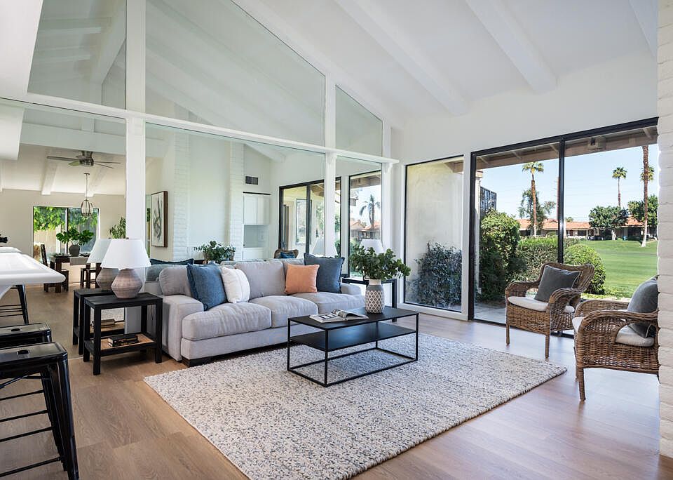 Gorgeous 3 bedroom 2 bath home with NEW kitchen counters, kitchen cabinets, new flooring throughout, new bathroom vanities. Home overlooks the golf course with gorgeous views throughout. The interior boasts an open floor plan and offers a bar to entertain. Creates the perfect indoor/outdoor lifestyle and walking distance to the pool! Monterey Country Club offers Pickleball, Bocce Ball Court, Clubhouse, Pools, Spas, Controlled Access, Fitness Center, Golf, Onsite Property Management, Tennis Courts.