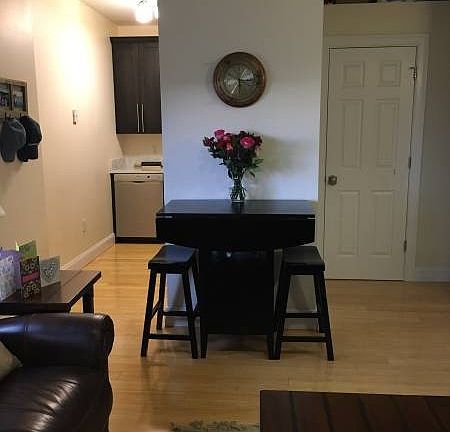 Open layout, high ceilings, exposed brick, laundry in building, and the bedroom fits a queen sized bed. Central A/C. Heat included in rent. Heat included. Tenant responsible for electricity.