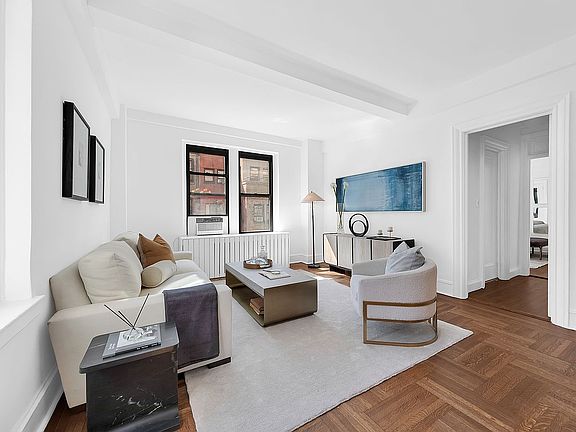 Building amenities include a live-in superintendent, bike storage, keyed elevator access, laundry room, and a beautifully landscaped roof terrace with panoramic city and river views. Washer/dryers are permitted with board approval. Ideally situated near both Riverside and Central Park, and close to multiple transportation options, this home offers the best of classic Upper West Side living.