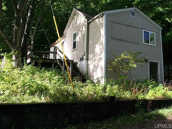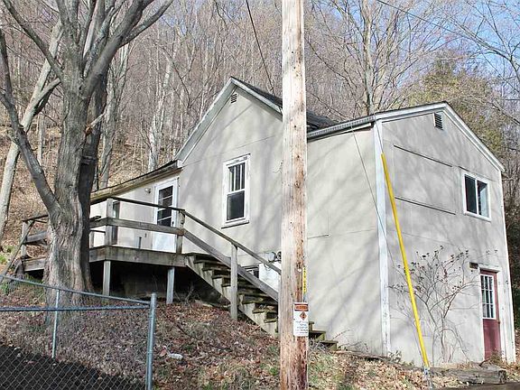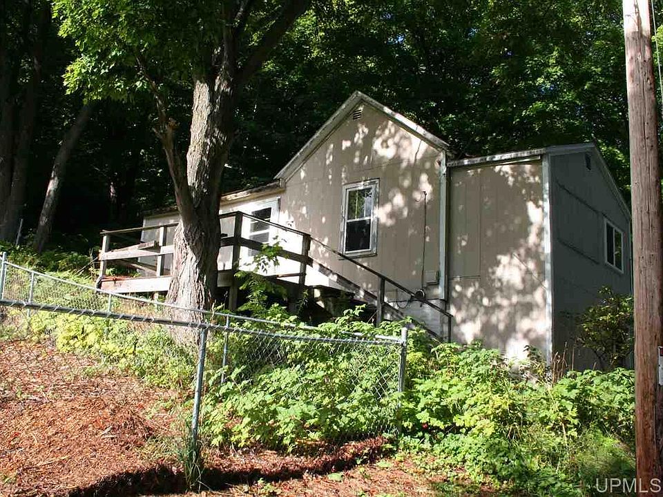 Wooded city lot on hillside. No value on the structure, value is in the land (w/existing utilities).