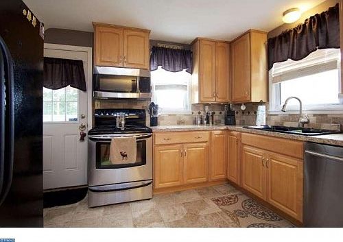 Great location for this Move in ready 3 bedroom home with 1 car garage and large fenced in back yard with above ground pool and deck beautifully landscaped. Enter into this comfy cozy home that has been completely redone. Large Living room with detailed moldings, HW floors, and large front windows that add in natural sunlight. Beautifully redone kitchen w/tile floor, plenty of counter and cabinet space, tile backsplash, newer appliances and new lighting. Breakfast bar that leads your into the dining area with HW floors, wainscoting and crown molding. Off of kitchen you will find a back door that leads you to large deck that overlooks backyard for entertaining your guest. Upstairs there are 3 bedrooms all nicely done with plenty of closet space. 3rd bedroom is off of the master bedroom and is perfect for the nursery or office area. 1 full bathroom that has been completely updated w/natural tile floor and tile tub surround and granite vanity. Basement is not finished but very clean with laundry area and plenty of storage room. Close to all major roads and highways, schools, shopping and Philadelphia Premium outlets and restaurants.