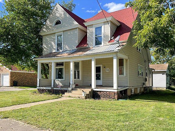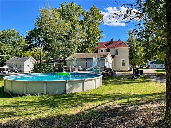 Check out this 4-bedroom 2 story home featuring a pool with a nice deck attached! The main floor features the master bedroom with a gas fireplace, full bath, living room, and spacious open concept kitchen with breakfast bar and dining area attached. Upstairs you will find an additional three bedrooms and a full bath. There is also original trim and wood flooring throughout the house. The large front porch is perfect for relaxing! Along with the deck and pool in the backyard, you will also find a detached 2 car garage. The unfinished basement is perfect for storage that includes a laundry area. Lots of space in this home. Seller will convey this home as-is, come check it out!