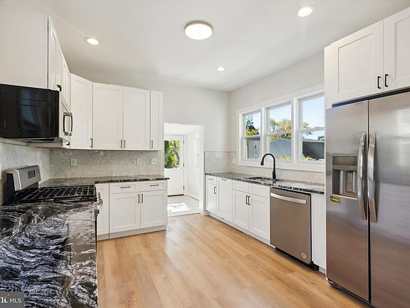 This beautifully restored 4-bedroom, 3-bath Colonial Victorian features an open-concept living and dining area, perfect for daily life and entertaining. The first floor includes a bedroom and a dedicated laundry room for added convenience. The kitchen is equipped with modern appliances, including a gas stove, ample storage, and natural light throughout. Upstairs are three bedrooms and a large full bath, including a primary suite with an en-suite bathroom. The third floor offers a flexible attic space, suitable to fit a variety of uses. Recent upgrades include a brand new metal roof installed, a new HVAC system, and central air. Outside, the property includes off-street parking and mature trees for added privacy. Located on a quiet block, the home provides easy access to major highways, the airport, and commuter rail services (12 minutes by rail to UPenn) blending historic character with modern updates.