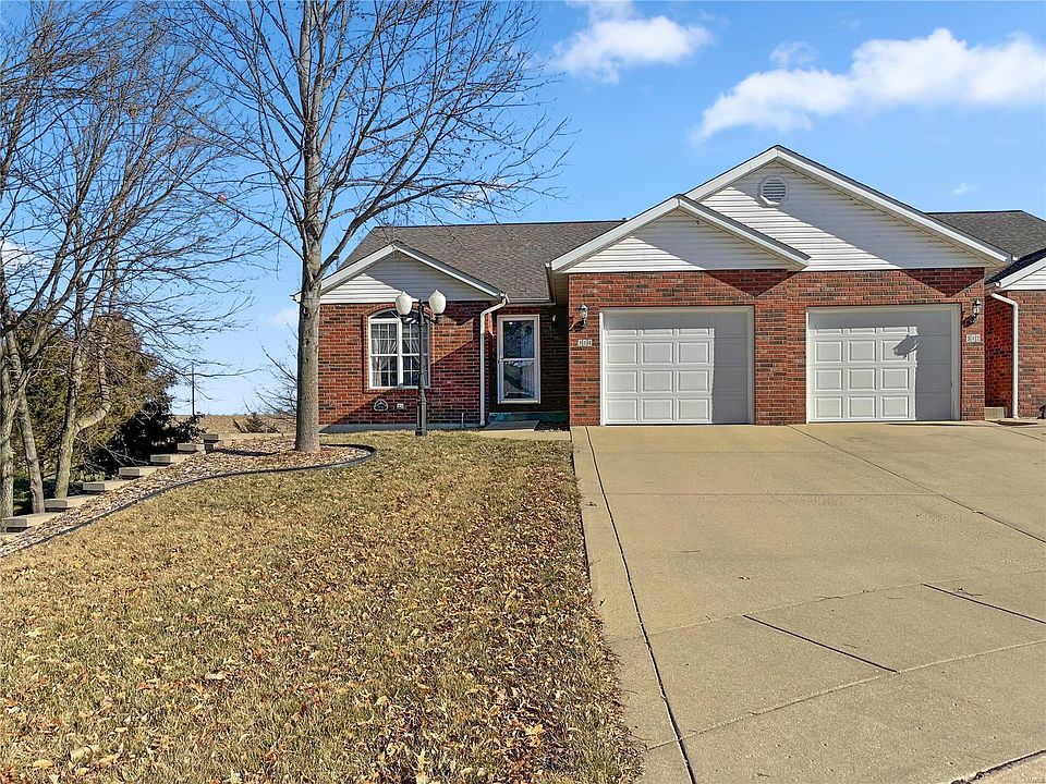 Fantastic opportunity to own 1/2 of attached duplex in one of Waterloo's most desirable location. Just over 1700 square feet finished, this 3 bed, 2 bath has everything you could want. Ranch floor plan with partially finished basement. Open floor plan with spacious living room featuring a tall vaulted ceiling, frieze carpet, coat closet, arched transom window. Open to a large kitchen vaulted ceiling, wood cabinets and white appliances. Kitchen walks out to a composite deck with aluminum spindles and a field view. This home is on a cul-de-sac. Real plaster throughout. Master bed is spacious with en-suite featuring vanity plus makeup station. There are huge walk in closets. Separate bathroom with a tub.shower combo featuring 2nd vanity and powder room with custom Tile. 1 Car attached garage. Lower level features a second full bath with tub/shower combo, family room and 3rd bedroom with double closet and full egress. Central Vac.