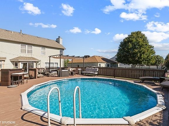 Great looking home with so much to enjoy! A great entertaining yard that is fully fenced with new brick paver patio and deck surrounding above ground pool. Step inside to relax by the gas fireplace in the family room. The kitchen has newer stainless appliances and corian counter and eating area. Or you can utilize the formal dining room and living room. There is also a mud room from the 2 car garage and 1/2 bath on the main floor. Upstairs you will find 4 good sized bedrooms. The primary suite has full bath and walk in closet. There is even more living space in the basement with a recreation room or office space and lots of extra storage. The home is in a nice neighborhood and close to park and playground.