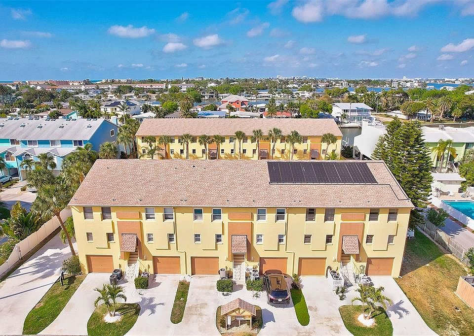 PRICE IMPROVEMENT***Welcome to Paradise. A rare opportunity to own a beautiful, immaculate, ready to move-in townhome in the most sought after beach town of Indian Rocks Beach. This Indian Cove end unit offers 2 bedrooms, 2 full baths, 2 half baths and a bonus room with your own Tiki bar and an additional Murphy bed that sleeps 2 more people. Enter the home to a newly remodeled bright and beautiful white cabinets Kitchen with white quartz countertops and all new stainless steel appliances. Kitchen has a half bath next to the entrance, large closet Pantry and tons of cabinets. The Dining/Living great room is bright and spacious. Head upstairs to a split plan 2 bedrooms/2 full baths. Primary room has its on-suite bathroom and balcony for relaxation. laundry room in also on the same level with full size washer and dryer and plenty of room for storage. Second bedroom and a full bath are also on same level. Bonus room on first level behind garage is your beach entertainment hotspot for your family and friends. Opens to the pool patio, room has a super cool Tiki bar with enough seating for all your guests. It also has a second half Bath (the only unit in the complex with a lower level bath) which is great when you're enjoying the heated pool outside. The garage is a large one car with lots of organization and shelving and a workman's bench. The unit is sold furnished ( except of a few items owner is keeping). A short walk to the beach (less than 10minutes) , this unit is perfect as a full time residence, part time Beach escape or a rental income property as the minimum rental period is 2 weeks, perfect for snowbirds, winter and summer vacationers flocking to our paradise under the sun.
