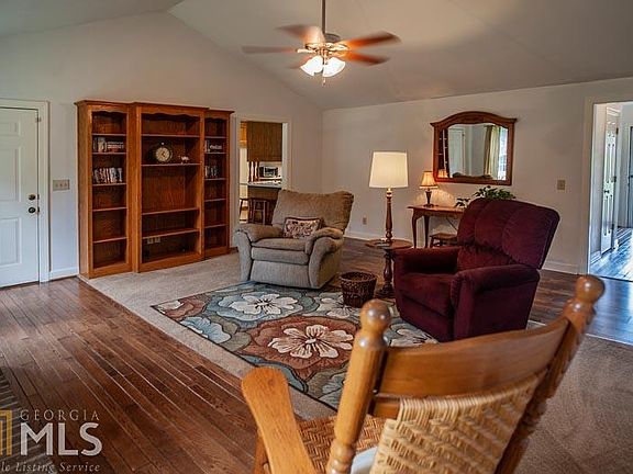 This 3 bedroom 2 bath Ranch is close to the Historic area of Madison & located on over 14 acres with a rocking chair front porch! Perfect for those w/allergies, laminate flooring runs throughout most rooms including the spacious family room w/wood stove insert & formal dining room. The spacious kitchen has a bfast bar & eat-in kit. Down the hall is the master bedroom & master bath w/custom step-in shower & huge master closet. Additionally, there is a full bath & 2 large bedrooms w/ample closet space. As a bonus, off of the family room there is a charming screened-in porch overlooking a private backyard that has a 44x36 custom shop w/power and water! There are numerous fruit trees, muscadine vines, and beautifully matured foliage throughout the property.
