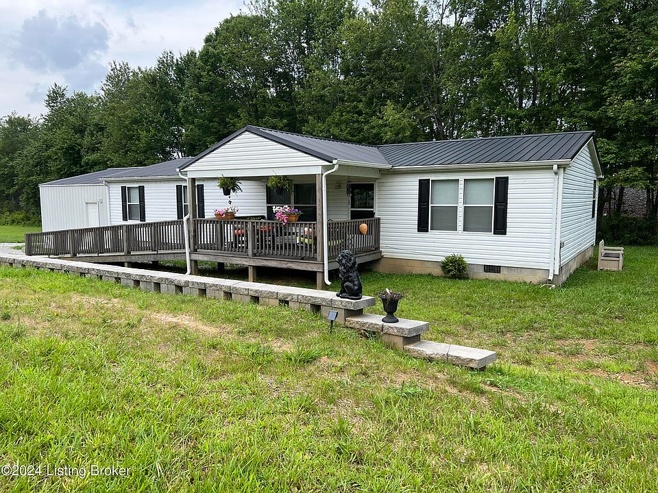 Check out this gorgeous doublewide on a permanent foundation located just outside of the Leitchfield city limits and situated on 1.41+/- acres. This 1512+/- sqft 2006 model home features 4 bedrooms and 2 baths with an open split floor plan. The entire home has been remodeled and features laminate wood flooring throughout as well as drywall walls. Outside features two open lots with plenty of room to add additional outbuildings, a covered front porch with ramp and a back deck! This property is conveniently located on HWY 62 and within a short distance to local shopping, the Western KY Parkway and more! Call or text to schedule a showing!