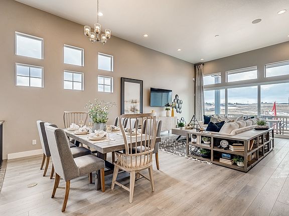 Brand new luxury ranch style home available November, 2021 in the brand new Macanta community in Castle Rock. This magnificent home features 13' ceilings in the great room, dining room and kitchen with 10' ceilings everywhere else, massive 8'x15' sliding glass door out to your oversized covered back patio, luxury spa shower with frameless glass enclosure, dual shower heads and poured tiled pan. Incredible luxury finishes throughout including white glazed cabinetry, quartz and granite counter tops, high end tile backsplashes and accents, hardwood flooring throughout main living areas and much more. Kitchen features gourmet appliances with gas cooktop, double ovens, and range hood with 42" cabinetry, walk in pantry and tons of counter top space. This amazing home backs to a green belt and offers a short walk to the future amenity center.