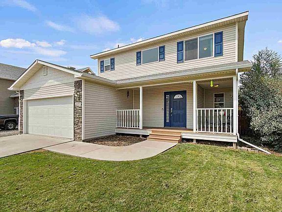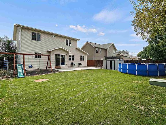 Lovely 2-story home that boasts charming curb appeal! Large covered front patio is the perfect place to enjoy your morning coffee! Inside boasts upgrade laminate flooring on the main level , for ease of care. Kitchen has plenty of cabinet storage and includes ALL appliances, convenient eat-in dining space and slide-door access to the open patio. Cozy living area offers an abundance of natural sunlight through the many windows that overlook your manicured backyard! Office/Den/Flex Room off the entry can be utilized to fit your specific needs and offers additional space to spread out! Half bath on main level for convenience. 3 spacious bedrooms and two bathrooms on the upper level offer privacy from the downstairs living area. Master suite has a large walk-in closet and 5-piece bathroom. LARGE backyard offers open patio, mature landscaping & above-ground pool, swing set & shed included!