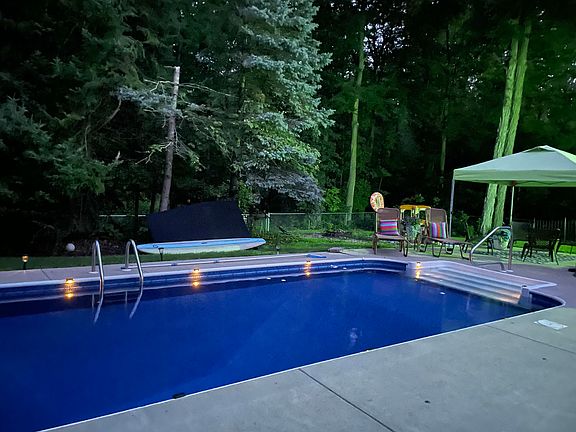 Brick ranch style homeHot tubIn-ground poolCoved ceilingsBackyard oasisWooded lotGranite counter tops