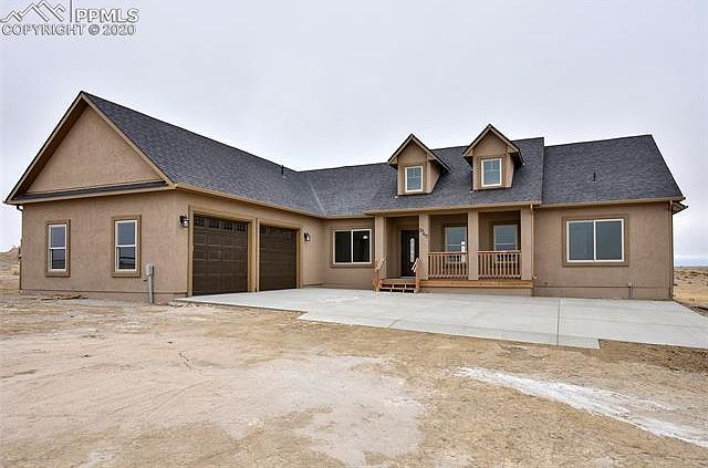 Don't miss the chance of a lifetime. Very rare, newly built wood framed home on 5 acres within 10 minutes of town! This home has everything you could ask for - Over 2000 finished square feet, gorgeous kitchen with pantry and soft close cabinets/drawers, large master suite with on-suite luxury bathroom, home office, 2 car attached garage, stucco exterior, central air, amazing fireplace, and zoned for horses. All of this and an amazingly beautiful, unobstructed, view of Pikes Peak and the Front Range!