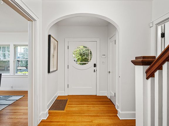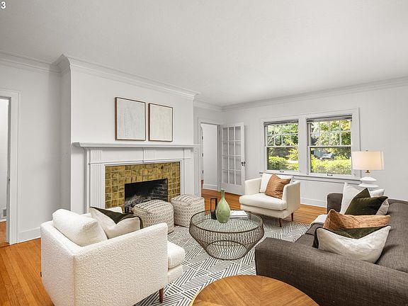 Beautiful English Cottage in desirable Irvington neighborhood. Many updates throughout. Original architectural features combine seamlessly with modern design to create style and comfort. The home features beautiful just refinished oak hardwood flooring, formal living room with gas log fireplace with French doors. Rare and spacious main floor den/family room with French doors leading to private back yard. The gourmet kitchen with beautiful oriel window in the eating nook, high-end stainless steel Ferguson range, built-in microwave, large inset sink, quartz countertops, and abundance of cupboards and drawers for storage is perfect for creating culinary masterpieces. The upper level features a spacious landing with cozy window seat, three bedrooms and two full bathrooms including the luxurious primary suite with full bathroom with sauna, spacious shower, window seating area and generous walk-in closets with tons of built-in shelving. The lower level includes a full bathroom, utility/laundry room, additional spacious rooms with high ceilings for an abundance of storage. The landscaped back yard with plumbed gas fireplace and pergola and mature plantings is an ideal space for entertaining or enjoying as a quiet retreat. Large double bay 2 car garage and private driveway for off street parking.*Whole home central vacuum system, John's waterproofing system, Central air conditioning. [Home Energy Score = 4. HES Report at https://rpt.greenbuildingregistry.com/hes/OR10080009]