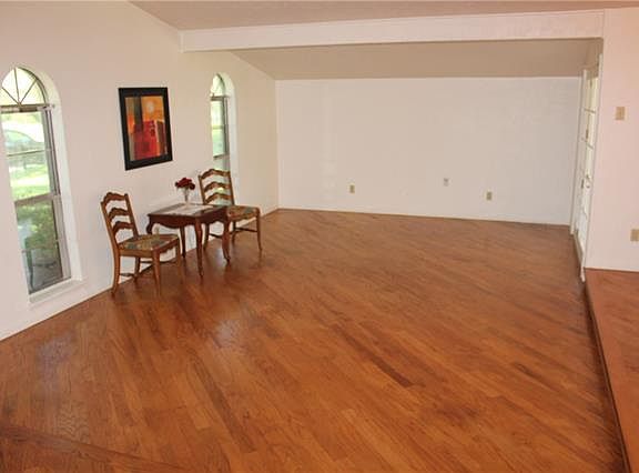 Single story brick home in established neighborhood close to popular parks, trails, shopping, dining, Geo Bush & I35. Stunning wood floors in grand living room, dining room and family room. Living room with French doors to huge covered patio. Large eat-in kitchen with newer stainless DW & microwave. Family room with brick fireplace and French doors to patio and yard. Pass thru window from kit to patio. Seller does not have a survey.