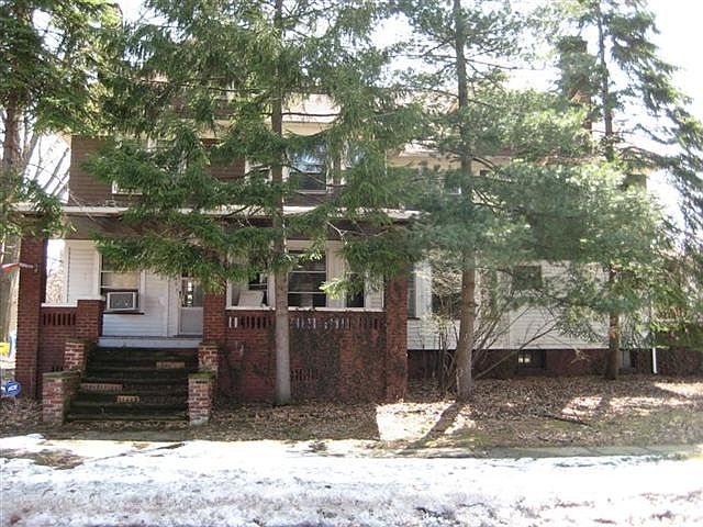 Unique century Craftsman side-by-side duplex features original woodwork. Beautiful inlayed hardwood floors. Living room in two parts with built-in bookcases and decorative fireplace opens to large wood paneled dining room. Kitchen features gas stove and refrigerator. Recent electrical upgrades to 100 amp service with all breakers replacing fuses. Three bedrooms; main with decorative fireplace. Large full bath. Storage on third floor. Basement with washer and dryer. Efficient gas hot water boiler provides uniform heat in radiators throughout the house. Spacious front porch. Garage parking. Walking distance to Cain Park and Dave's supermarket. Lee Road with shop and theater amenities. One month security deposit; one year lease, references. All utilities extra. One cat or small dog okay. Call for more information and to view. Renter is responsible for all utilities: gas, electric, water This is a non-smoking property. Minimum one year lease.