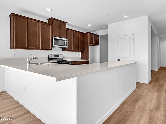 Lot 10 at The Views is the first home in the community offered under 600k, delivering incredible value without sacrificing space or style. This single-story Peavine Series plan offers 3 bedrooms, 2.5 baths, and a functional, spacious layout with tons of natural light throughout. Located on a quiet, private street, this home includes a landscaped front yard and offers the same desirable city, mountain, and valley views that make The Views so special. Inside, you'll find the thoughtful design the community is known for: open living spaces, quartz counters, engineered wood flooring, a walk-in pantry, and a finished garage. Attached only by the roof, homes here do not share common walls - each has its own wall structure with an air gap for added privacy. Conveniently located minutes from UNR, the airport, downtown Reno, shopping, and major freeway access.