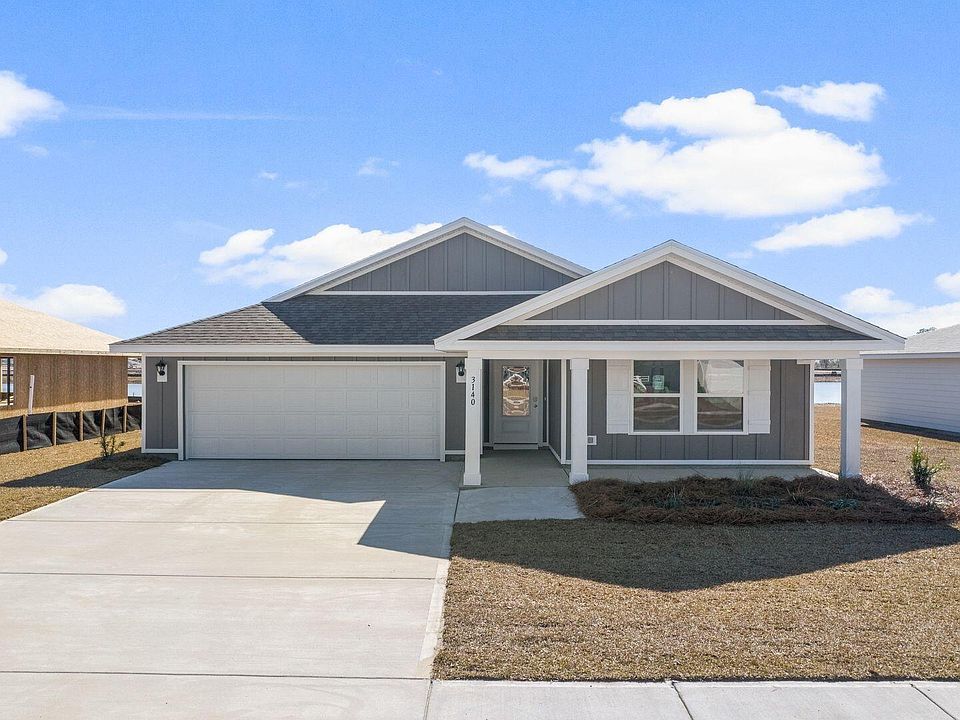 When you enter the Lakeside floorplan you will notice immediately the brightness of the entry hallway. This 5 bedroom 3 bath, 2012 square foot home is an open floorplan with two bedrooms separated by a full bathroom at the front of the home and one bedroom across the entry hallway affording family and friends alike privacy when visiting. The large kitchen island overlooks the dining room and living room allowing all to be together or doing individual tasks in each area. The main areas of the home as well as the bathrooms and laundry have beautiful, engineered vinyl plank while the bedrooms offer plush carpeting. The spacious primary bedroom leads to the bathroom featuring a large shower, double vanity, and a large closet. Hodges Bayou is just a short drive to schools, restaurants, beaches, and all that Bay County has to offer. Family time can easily be enjoyed biking or taking evening walks to catch those gorgeous sunsets over the bayou. Sidewalks wind throughout for you to enjoy nature at its finest.