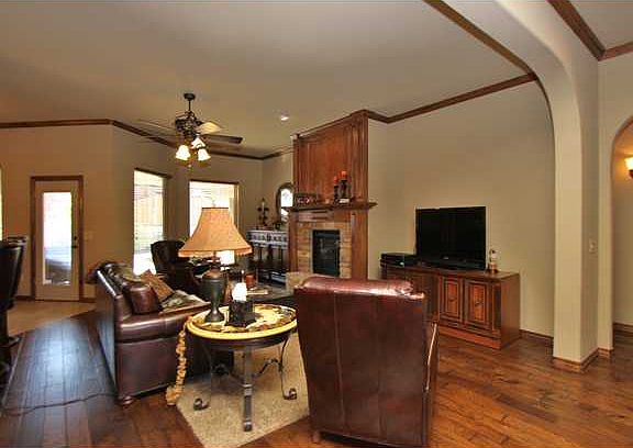 BEAUTY IN GORGEOUS, EXCLUSIVE, GATED FAIRFAX!! GOLF COURSE COMMUNITY, MIN FROM I-35!! 2011 TOM JONES RESALE. SUPER OPEN FLOOR PLAN. FABULOUS WOOD FLOORING AND FIXTURES. HUGE CUSTOM KITCHEN WITH CENTER ISLAND, PANTRY AND BREAKFAST BAR. BEAUTIFUL COLORS. PERFECT FOR ENTERTAINING! SELLER TRANSFERRED AFTER MAKING ALL THE RIGHT UPGRADES!! LANDSCAPING, SHUTTERS, WOOD BLINDS, STORM SHELTER AND PATIO FANS. AWARD- WINNING SCHOOLS! COMM POOL.