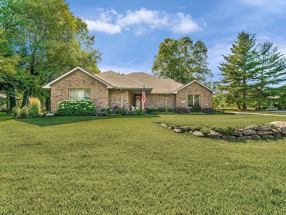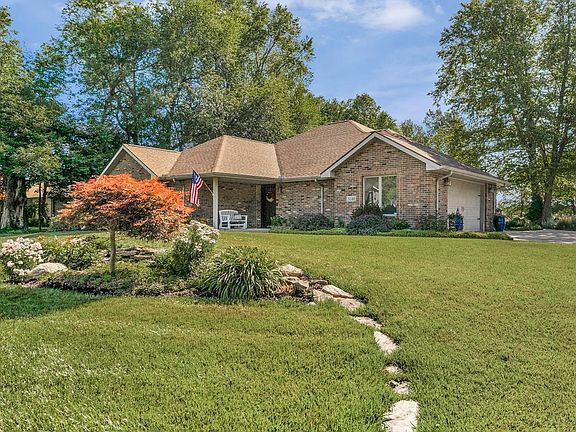 This stunning, custom built, brick ranch is in the Timber Valley subdivision on the 18th hole of the Wildcat Golf Course overlooking the beautiful ponds! The gorgeous home presents almost 2,600 square feet of living space with 3-4 bedrooms, 3.5 bathrooms, and many splendid features. Kitchen provides granite countertops, tiled backsplash, soft-close cabinetry, appliances, and bar seating overlooking the family room with fireplace. Also, open to the kitchen is the dining area that provides a custom barn door made in Utah with Kokomo Opalescent Glass accenting the door! Master suite includes a very spacious closet with a private bathroom that has dual vanity, tiled walk-in shower, garden tub, heated flooring, and large walk-in closet. Connected to the master suite is a den/living area (could be a 4th bedroom) with a gorgeous view of the golf course and 2nd barn door! Rounding out the rest of the home is a private laundry room, 2 more bedrooms with one having a private full bathroom, and the cleanest, oversized garage you will find! Other features: cozy patio with a stunning view of the course, HVAC 2 yrs old, Water Heater 2 yrs old, newer front and back doors, and exquisite landscaping!