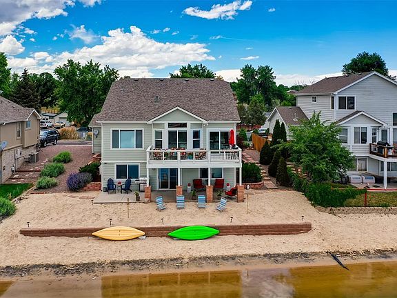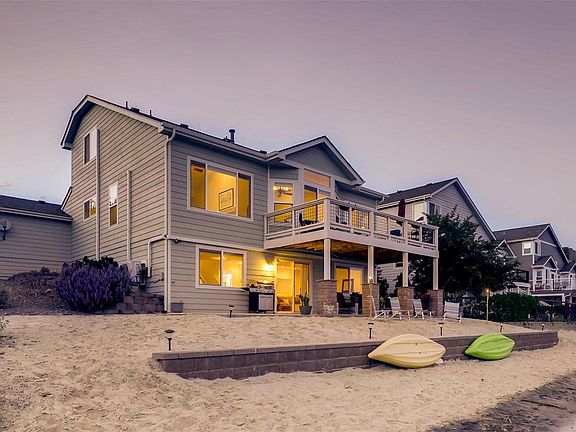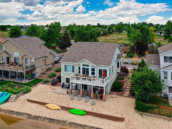 Your oasis in the city, a gated, waterskiing community with beautiful mountain views! This 3-level home with walk-out basement onto the beach and into the lake is comprised of 5 bedrooms and 4 bathrooms with a 3-car garage with high ceilings, an updated kitchen features granite counter tops, stainless steel appliances, white cabinets and breakfast bar. Built with 2x6 upgraded frame construction, updates also include new roof, exterior paint, hardwood floors, up and down Levolor blinds, decking and zone-oriented mini-split A/C. A family neighborhood and home, there are a variety of school options including highly rated private and great charter schools- Denver's Rocky Mountain Prep and Adam's County's Crown Point Academy. This unique property is among only a handful of such properties in Denver. Yet it's only minutes from LoDo. Easy access to the mountains, DIA, Boulder, DTC, the foothills, I-76, I-70, I-25 and 36. Don't miss your opportunity to own a little slice of heaven in Denver!