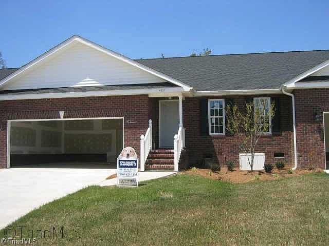 Exclusive townhome minutes from town with a spacious greatroom, fireplace, double garage, patio, brick exterior, storm front door, and much more!Homeowners dues are $75 a month. Property in city limits of Asheboro.Photos are sample photos only.