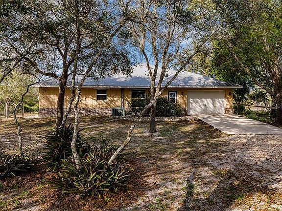 3 bedroom, 2.5 bath home sits on 2 and half acres zoned Agricultural in private rural setting surrounded by preserve land. Per seller home built above building code with 5VCrimp-Metal roof, extra insulation in attic, solar powered roof vents, reinforced concrete slab and walls, and roof with extra tie downs. The home welcomes you through the screened porch into the Great Room with wood burning fireplace custom built with floor to ceiling natural stone. The tongue & groove knotty pine vaulted ceilings throughout the home provide a warm and cozy atmosphere. Spacious kitchen boasts tile counters, pantry, brick paved flooring, and opens to the breakfast nook. Master bedroom has 2 walk in closets and en suite bath with custom tiled Roman shower and his and hers sinks. Bonus room with rich cedar wood off the master suite can be your private study or media room. Other features include fresh exterior & interior paint, decorator light & fan fixtures, storm shutters, and security system. Huge dedicated laundry room also has large pantry. Lots of storage for your equipment, vehicles, and "toys" with 200 sf shed, 240 sf and 360 sf carports, and 520 sf pole barn. Proximity to local beaches, dining, shopping, and golf courses makes this property ideal for the Florida lifestyle. Easy access to public parks with bike and walking trails, picnic areas, and boat ramps providing access to many waterways, beautiful Charlotte Harbor, and the Gulf of Mexico. And quick access to Interstate 75. True Florida country living!