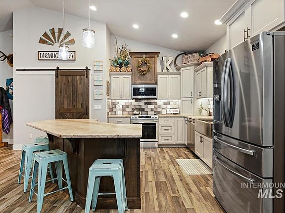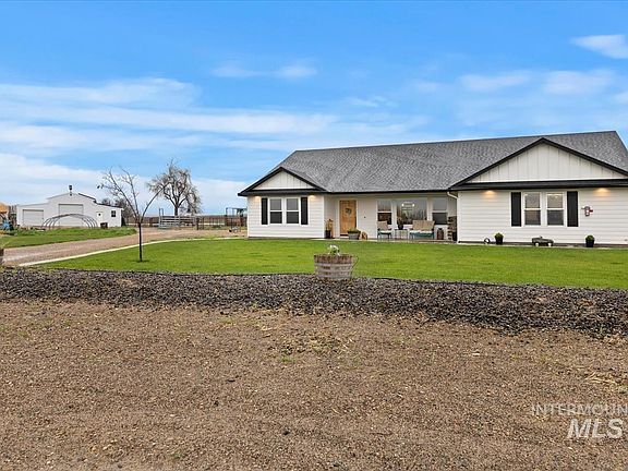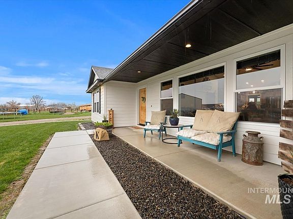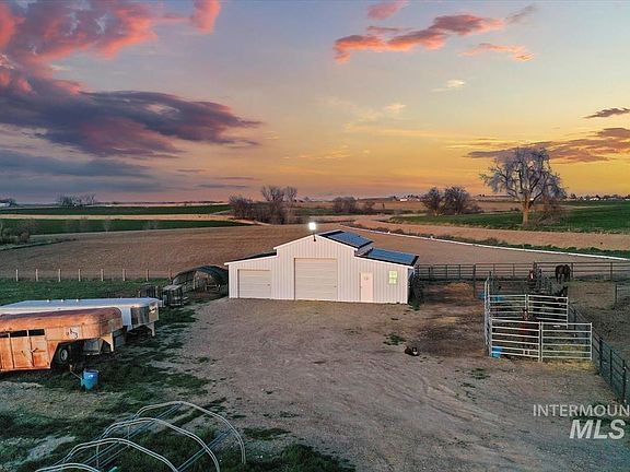 The slice of Idaho heaven you've been waiting for! Over 2 acres with a shop, barn & nestled at the end of a cul-de-sac with NO HOA! Single level, split bedroom home with vaulted ceilings in the great room and top of the line carpet/padding. Look out over your pasture from the sink in the functionally laid out kitchen with granite counters, under cabinet lighting & Stainless Steel appliances. Owners suite includes split dual vanities, water closet, waterfall shower head & walk-in closet. Pasture is fully fenced w/in-ground pressurized irrigation. 30x42 horse barn with electricity & multiple roll up doors for convenient access. Insulated 28x36 shop for your toys & equipment with 220v outlet, RV plug & two 10x10 garage doors. Icing on the cake is the 20,800 kWh solar panel system, which virtually eliminates the current owners' power bill year round, providing sustainable energy & long-term savings. Bring your animals & toys to start living the unhurried, idyllic lifestyle you've always imagined!
