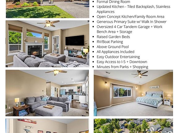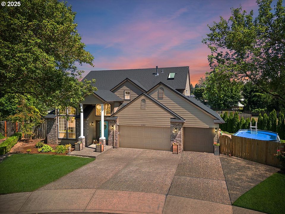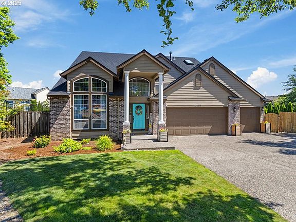 Welcome home to this beautiful 3-bedroom, 2.5-bath + den home tucked away in a peaceful Wilsonville cul-de-sac! The spacious layout includes a vaulted formal living room, elegant dining room, and a cozy family room with a gas fireplace—perfect for relaxing or hosting. Upstairs, the vaulted primary suite offers a walk-in closet and a luxurious walk-in shower. You'll love the convenience of the upstairs laundry and spacious layout. Step outside to enjoy the wraparound backyard—ideal for entertaining—with two paver patios, raised garden beds, and a concrete pad ready for games, RV parking, a pool or your own basketball court. The oversized 4-car tandem garage includes attic storage and a built-in workbench area for all your hobbies and gear. Parks, trails, and neighborhood charm complete the picture—don’t miss this one! *Current VA loan at 3.25% may be assumable.