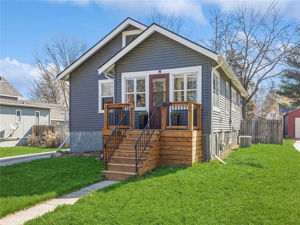 With over 1,700 square feet of finish- this home packs a punch! You are greeted by a spacious front porch, perfect space for a drop zone or morning coffee. The main floor features 2 bedrooms, a full bath, and a kitchen that transitions perfectly to the private back deck. In the finished basement you will find a 3rd bedroom, a large full bath and a full second living space. This is a very efficient home insulated to the max. Backyard has a 6’ wooden privacy fence with deck. Newer driveway that leads into an over-sized detached garage with plenty of space for a workbench etc. Great for working during the winter months with an insulated ceiling and storage in the attic. Schedule your private showing today.